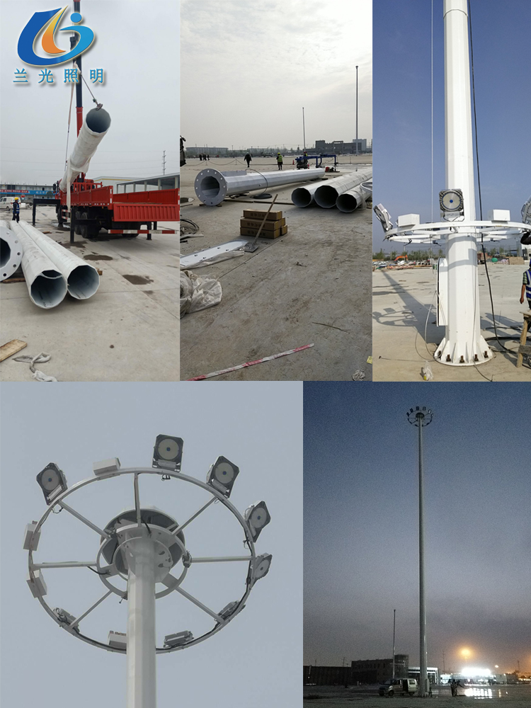 3.高桿燈頂部配設(shè)避雷針,所有連接部件為不銹鋼螺栓負載能力1000公斤。