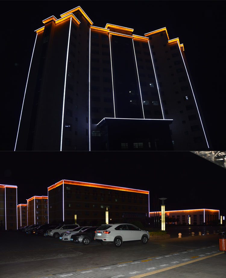 銅川建新煤化是我公司承接的廠區(qū)亮化工程之一,該項(xiàng)目整體從設(shè)計(jì)到施工,全程有我公司承擔(dān)負(fù)責(zé),設(shè)計(jì)根據(jù)甲方的要求,采用簡(jiǎn)潔明了的線條勾勒輪廓和打亮為主。在廠區(qū)主要的辦公樓、餐廳、員工活動(dòng)中心、員工福利中心、員工宿舍樓等員工主要活動(dòng)的場(chǎng)所樓進(jìn)行重點(diǎn)亮化。