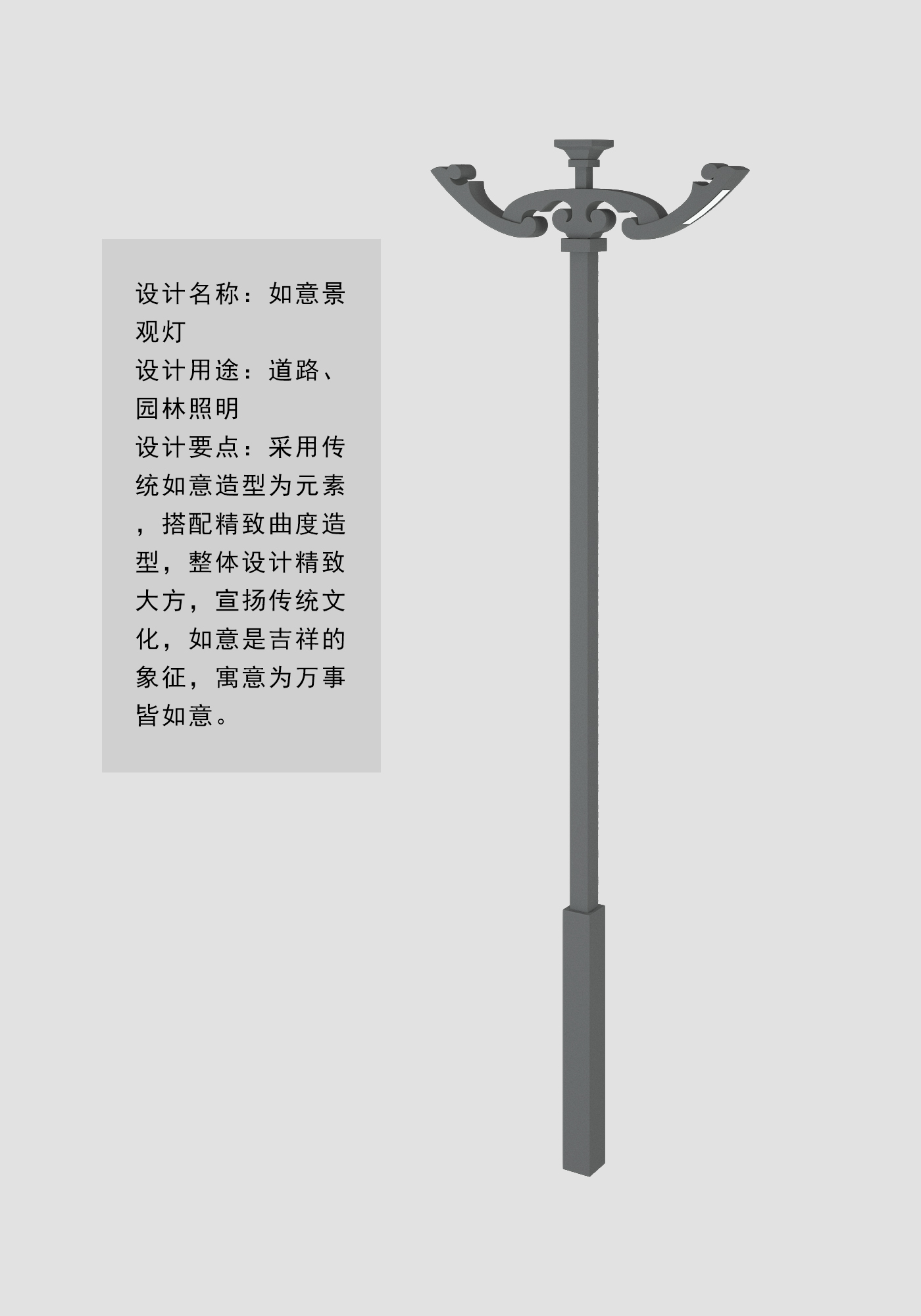 設(shè)計要點:采用傳統(tǒng)如意造型為元素,搭配精致曲度造型,整體設(shè)計精致大方,宣揚傳統(tǒng)文化,如意是吉祥的象征,寓意為萬事皆如意。
